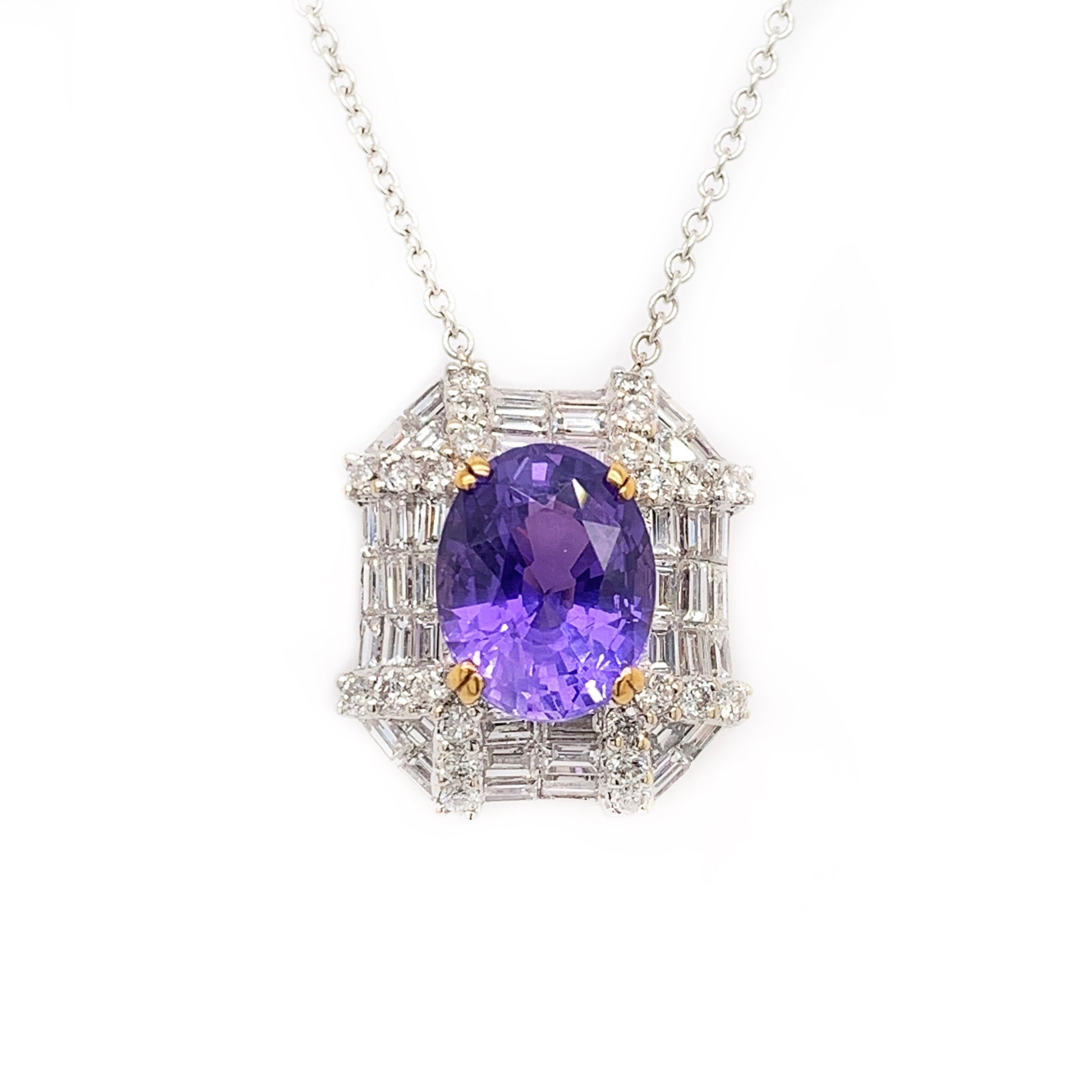GIA 3.83 Carats Unheated Violet-Purple Sapphire Pendant